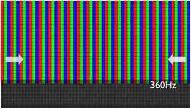 传统液晶驱动是从左到右单向进行,,在画面更新速度愈来越愈快的情况下,,,,位于驱动线路末端的右下角区域,,,画素的闸极来不及在短时间内获得足够电压,,无法显示出正确的颜色资讯。。。。 |